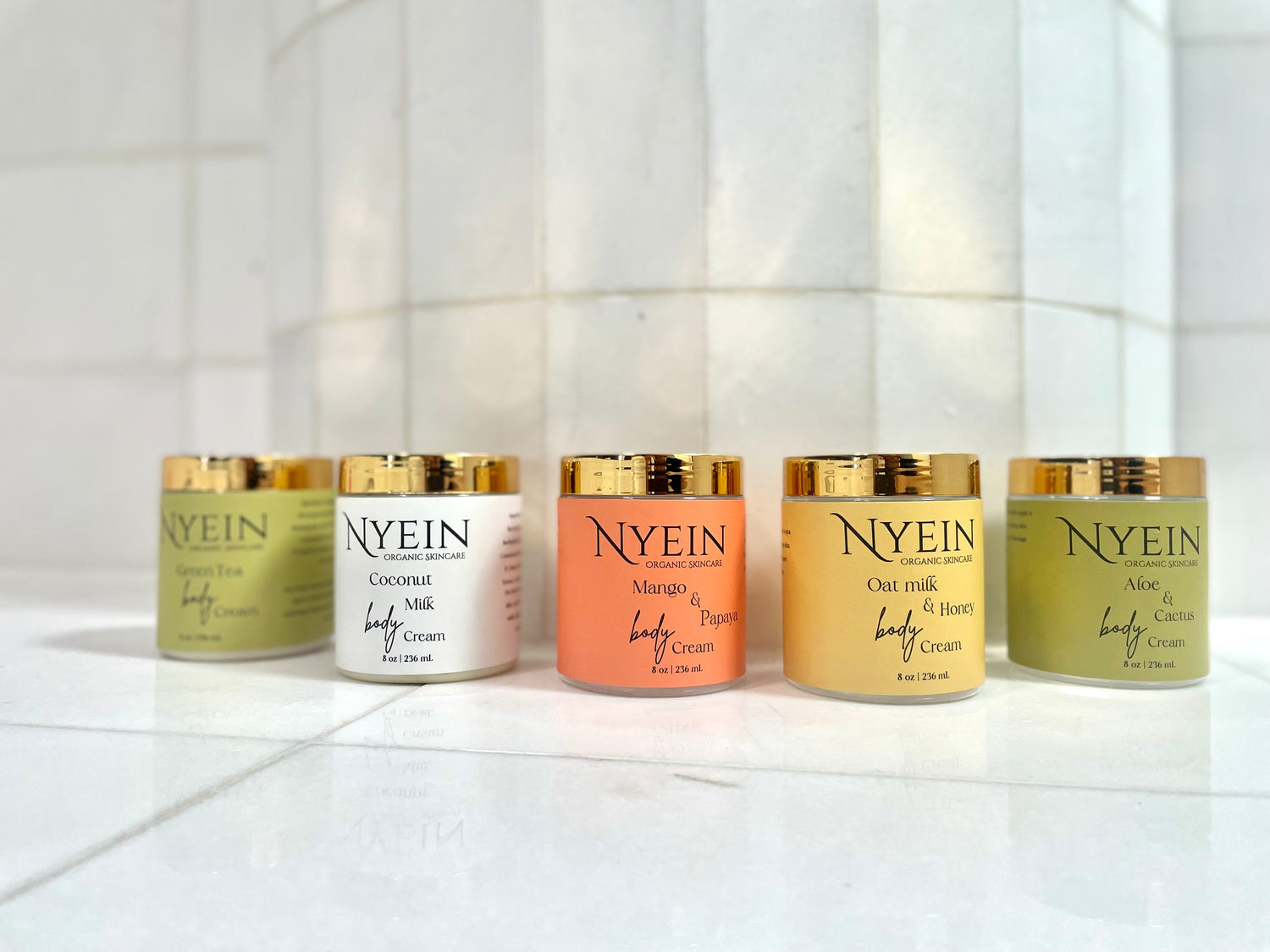 Reveal the power of pure hydration and unveil an ageless radiant, even skin tone with Nyein. Our revolutionary skincare products are meticulously crafted to transform your complexion and texture, ensuring that your skin looks luminous and flawless.